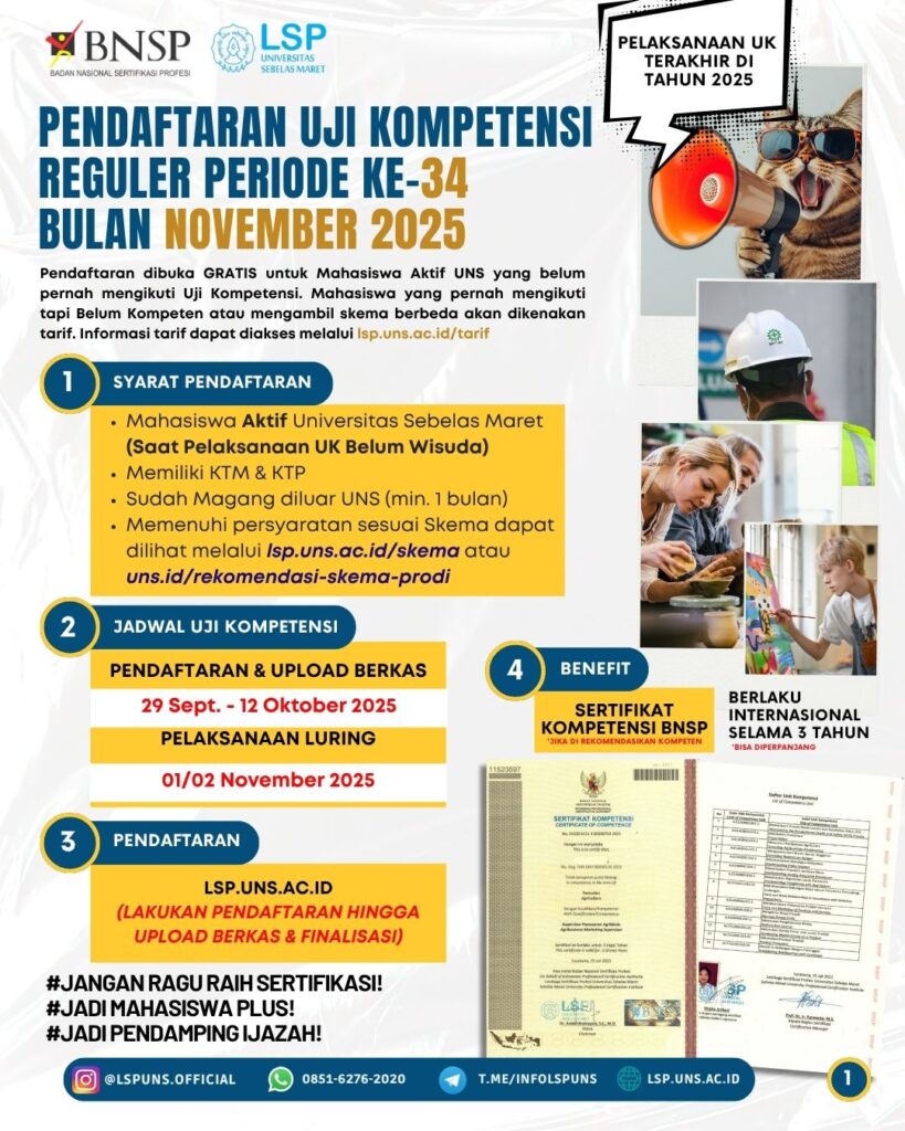 Menambah pentingnya sertifikasi di LSP UNS, bagi mahasiswa, sertifikasi kompetensi ini bukan sekadar tambahan di CV, melainkan investasi krusial untuk masa depan karier. Di tengah persaingan pasar kerja yang ketat, memiliki sertifikat kompetensi dari LSP UNS menjadi bukti nyata penguasaan keahlian spesifik yang diakui secara nasional. Ini berarti lulusan tidak hanya memiliki gelar akademik, tetapi juga keterampilan praktis yang valid dan relevan dengan tuntutan industri, membuka lebih banyak pintu kesempatan kerja, dan mempercepat jalur mereka menuju profesionalisme di bidangnya masing-masing.